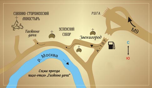 Далее по улицам Московской и Фрунзе в сторону Саввино-Сторожевского монастыря до указателя дома отдыха "Связист" - "Таежные дачи".